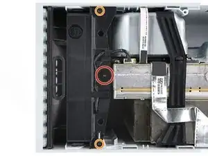 Используйте биту Torx T8, чтобы открутить три винта, крепящих вентилятор к центральному каркасу: