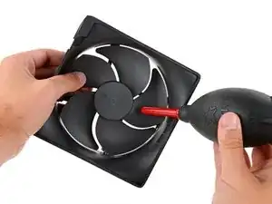 Используйте небольшую грушу для продувки или слабый поток сжатого воздуха, чтобы удалить оставшуюся пыль с вентилятора.