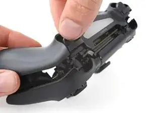 Найдите защёлки, заглянув в зазор над кнопкой R2 или L2.