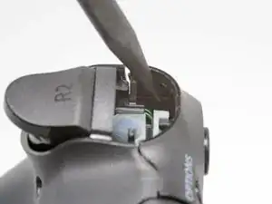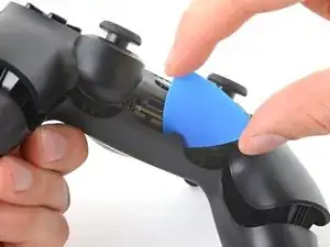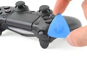 Используйте медиатор для вскрытия, чтобы поддеть и снять кнопку R1 так же, как вы это сделали с кнопкой L1.