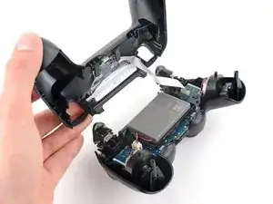 Не открывайте контроллер пока что — он всё ещё удерживается двумя очень хрупкими защёлками возле триггеров.