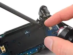 Вставьте остриё пластиковой лопатки через зазор над кнопкой R2 и нажмите на фиксатор, выводя его наружу.