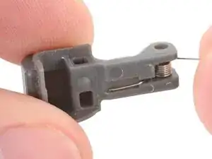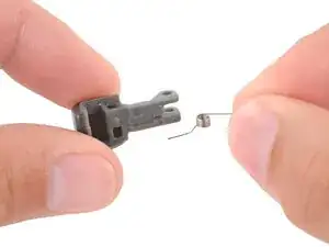 Вставьте пружину в плечевую кнопку так, чтобы изогнутый рычаг вошёл в выемку на внутреннем крае.