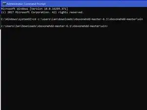 Введите команду "cd C:\Users\(Your Name)\Downloads\xboxonehdd-master-6.1\xboxonehdd-master\win"