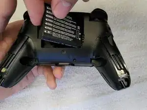 Используйте небольшой язычок на боковой стороне батареи, чтобы извлечь батарею из контроллера.