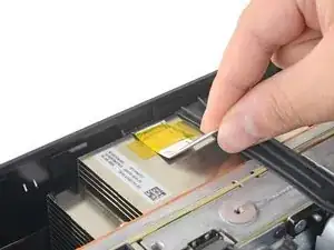 Виброизолятор фиксируется на боковых сторонах оптического привода силиконовыми накладками, поэтому может потребоваться постепенно «сдвинуть» его с привода, освободив сначала одну, затем другую сторону.