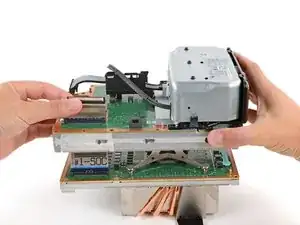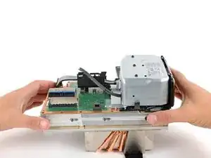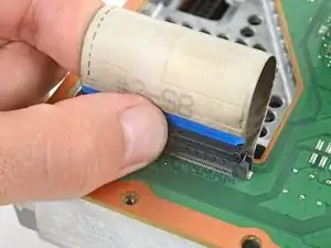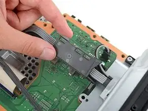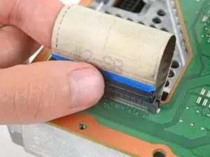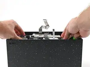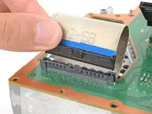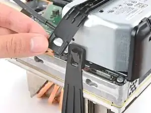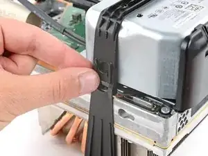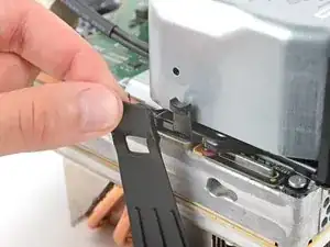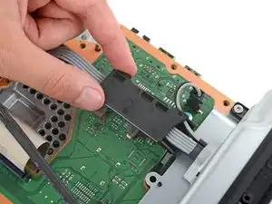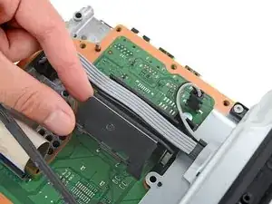 Если кабель USB-порта приклеен к металлическому шасси, используйте iOpener или фен, чтобы нагреть его. В зависимости от модели Xbox может понадобиться также пронести распорку под кабель, чтобы разъединить клей.