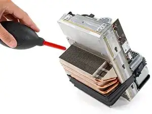 При сборке это хорошее место для очистки рёбер радиатора от накопившейся пыли, грязи или мусора. Используйте баллон со сжатым воздухом или резиновую грушу, чтобы очистить рёбра.