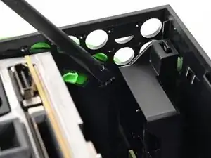 При сборке проложите кабель вентилятора под его направляющей на корпусе вентилятора, чтобы он не мешал установке задней панели.