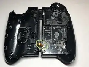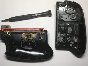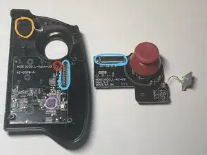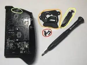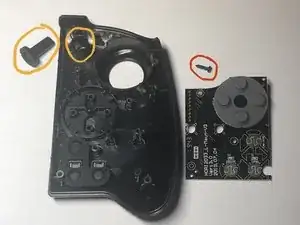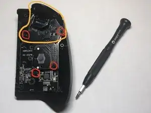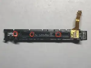 Удалите четыре винта PH0: два, удерживающие пластики кнопки ZL, один на верхней плате кнопок и один из двух винтов, крепящих основную плату.