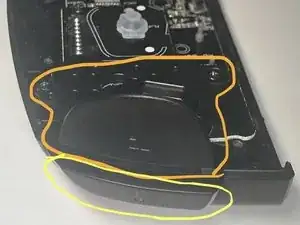 Маленькая плата кнопки L вставлена в слот и имеет деликатные провода, соединяющие её с верхней платой кнопок.