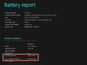 Вы можете проверить состояние нового аккумулятора, открыв PowerShell от имени администратора и введя: powercfg /batteryreport /output "C:\report.html". Отчёт будет сохранён на вашем диске C: с указанным именем файла.