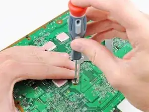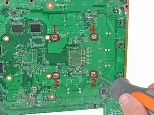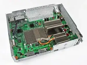 Переверните Xbox, осторожно, чтобы материнская плата не выпала из шасси.