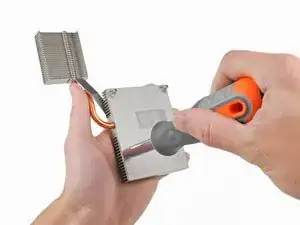 Вставьте плоский конец лопатки в небольшое прямоугольное отверстие на верхней части канала охлаждающего вентилятора.