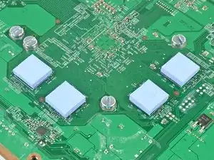 Снимите четыре силиконовые термопрокладки, установленные на микросхемах оперативной памяти на нижней стороне платы.