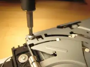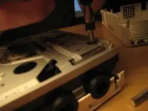 Из-за закреплённого провода, идущего к приводу, мы снова закрепили крышку, чтобы вынуть весь блок привода, не повредив электронику.