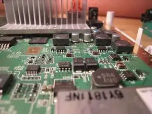 Удалите все винты с крышки платы логики. Два винта утоплены в середине; остальные вдоль краёв. По мере удаления других деталей появятся дополнительные винты. Это как игра! Можно начать с винтов, удерживающих чёрные пластиковые элементы, но я начал с самых заметных и продолжал дальше.