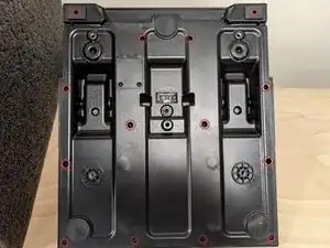 Переверните набор педалей и удалите 14 винтов с нижней части (выделены красным).