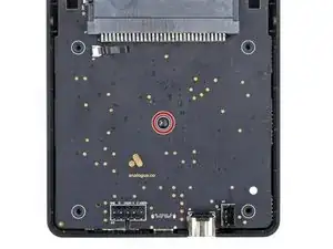 Используйте отвертку T6 Torx, чтобы выкрутить винт длиной 7,4 мм, крепящий главную плату.