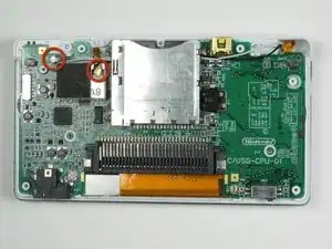 Удалите следующие семь винтов, которые крепят нижний корпус к DS Lite: