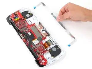 Используйте лопатку или чистый ноготь, чтобы поднять защелку на соединительном кабеле джойстика ZIF-разъеме, расположенном на плате правого джойстика.