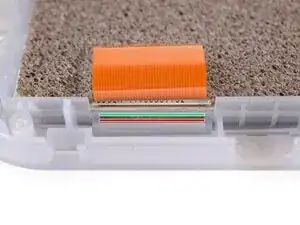 Используйте острый конец лопатки, чтобы полностью поднять обе фиксирующие защёлки по обе стороны разъёма шлейфа экрана.