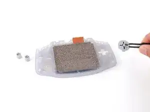 Если экран не поддается, переверните Game Boy и приложите к экрану разогретый iOpener на две минуты, чтобы размягчить клей. В качестве альтернативы можно использовать фен на низком нагреве — будьте осторожны, чтобы не перегреть устройство, иначе пластик может деформироваться.
