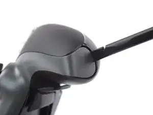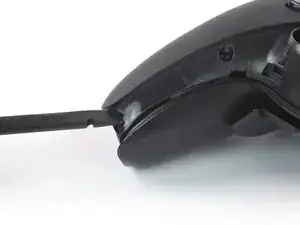 На нижнем крае левой рукоятки вставьте плоский конец лопатки или чистый ноготь между лицевой накладкой и задней крышкой.