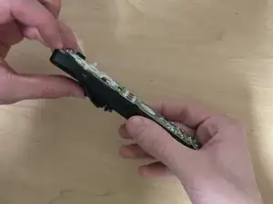 С помощью лопатки для вскрытия нажмите на защёлки, расположенные рядом с кнопкой «A».