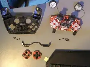Снимите винты, удерживающие крестовину и кнопки в передней части корпуса, осторожно поддев их плоской отвёрткой. Чтобы снять кнопки-плечи, просто вытащите их.
