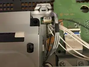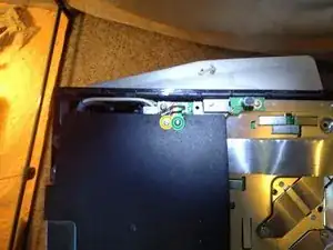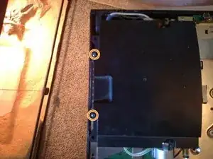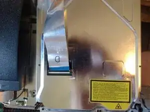 Переверните привод Blu-Ray и поднимите черный язычок, чтобы отсоединить ленточный кабель.
