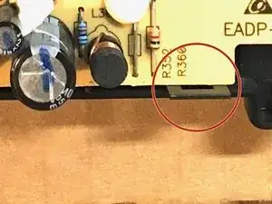 Удалите 3 винта Phillips с нижней стороны блока питания. Они удерживают верхнюю и нижнюю половины пластикового корпуса блока питания.