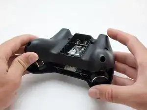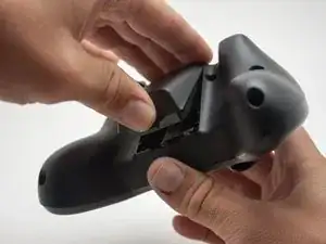 Держа контроллер перевёрнутым, аккуратно разъедините корпус, начиная с задней части контроллера.