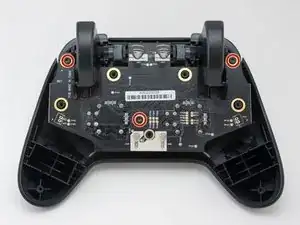 Удалите три винта T7 длиной 7 мм, которые крепят плату к верхней половине корпуса контроллера.