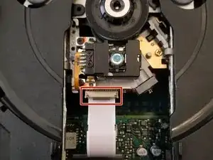Осторожно отожмите фиксаторы ленточного разъема и потяните ленточный кабель назад.