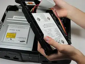 Подденьте чёрные пластиковые защёлки вокруг дисковода, чтобы извлечь его из корпусной рамки. После извлечения отложите привод в сторону.