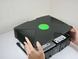 Когда верхняя и нижняя части корпуса больше не скреплены, аккуратно установите Xbox в исходное положение, снимите и поднимите верхнюю крышку.