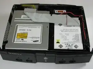 Выньте пластиковую корзину жёсткого диска из корпуса Xbox.