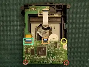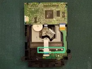 Осторожно поднимите защёлку удержания ленточного кабеля. Лента приклеена к нижней стороне платы через клейкую подкладку. Аккуратно оторвите ленту от подкладки.