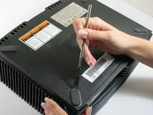 С помощью металлической лопатки подденьте и снимите четыре резиновые ножки.