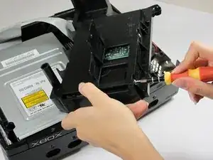 Отверните три винта T10 длиной 3 мм, фиксирующие жёсткий диск в Xbox.