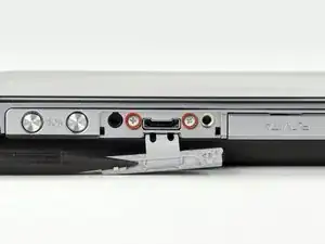 С помощью отвертки Phillips #00 отвёрните два винта 5,4 мм, скрытые под крышкой порта аксессуаров.