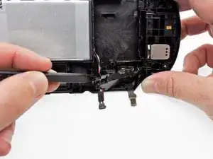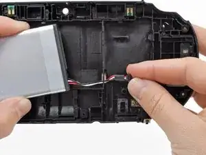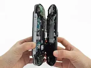Осторожно разделите две половины корпуса, учитывая разъёмы аккумулятора и контроллера сенсорного экрана, которые удерживают части вместе.