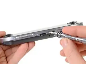 Отвёрткой Phillips #00 отвёрните два винта 5,4 мм на нижней части устройства возле разъёма зарядки.