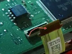 Для более тонкого шлейфа подсветки слегка поднимите маленькую чёрную планку вверх ногтем или тонкой плоской отвёрткой.