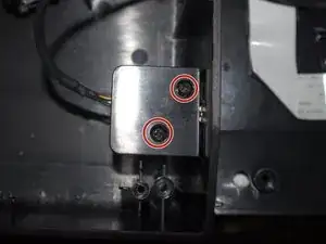 Чтобы удалить его, найдите маленький блок с двумя винтами сверху в правом нижнем углу нижнего корпуса.