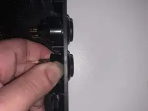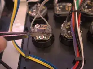 Используйте пинцет, чтобы слегка сжать выступ, находящийся за обжимом провода. Затем аккуратно снимите его с разъема кнопки.