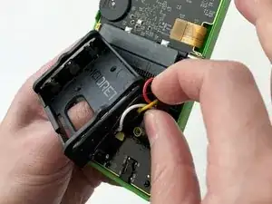 Снимите пружину пластинки двери, полностью нажав на защёлку крышки батарейного отсека. Пружина должна выпрыгнуть.