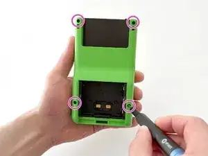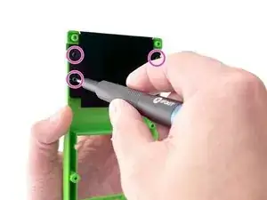 Удалите винты задней крышки (x4) при помощи отвертки Tri-wing Y1.