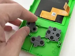 Извлеките резиновые мембраны кнопок (x3) из их гнёзд.